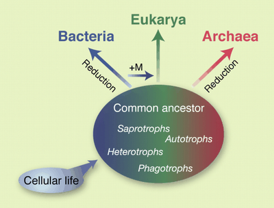 It was thought before that Bacteria arose first, that Archaea evolved from a branch off of bacterial line, while the first Eukarya (protists) evolved through the process of endosymbiosis: small bacteria and archaea finding permanent homes within the cell of larger bacteria and forming organelles. It was thought that bacteria were always simple, that Archaea are somewhat more complex, and that Eukarya are the most complex.