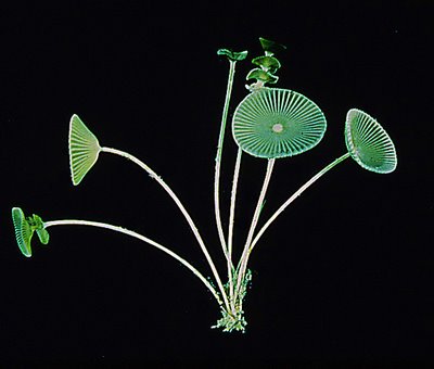 Even some of the unicellular protists can be quite large – an Acetabularia (‘mermaid’s wineglass’, see picture) cell is about 5 cm long, thus perfectly visible to the human eye. Most protists reproduce regularly by asexual processes, e.g., fission or budding, utilizing sexual reproduction (e.g., conjugation, which is gene-swapping) only in times of stress. Some protists are surrounded only by a plasma membrane, while some others form shells of silica (glass) around themselves. Some protists have flagella or cilia, while some others move by pseudopodia (false legs – ameboid movement).