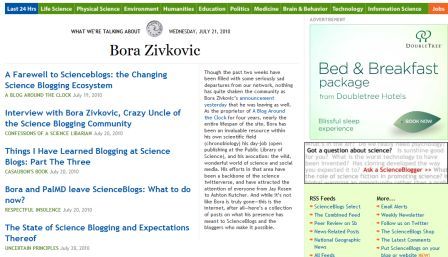 About a week ago I was interviewed for Jekyll, an Italian science journalism blog. The interview is now up – you can read it here if you can read Italian, and if not, all the audio files are in English, the recording of the phone interview itself, in its entirety. We cover a lot of ground on science blogging, media, etc. Listen/read when you have time.
